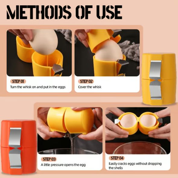 How to Use: Put the eggs into the cube, and press the metal clamp with your fingers. Doing so will indeed crack the inside of the eggshell Finally, turn the cube upside down and open, and then pour the cracked egg yolk into a plate or container.