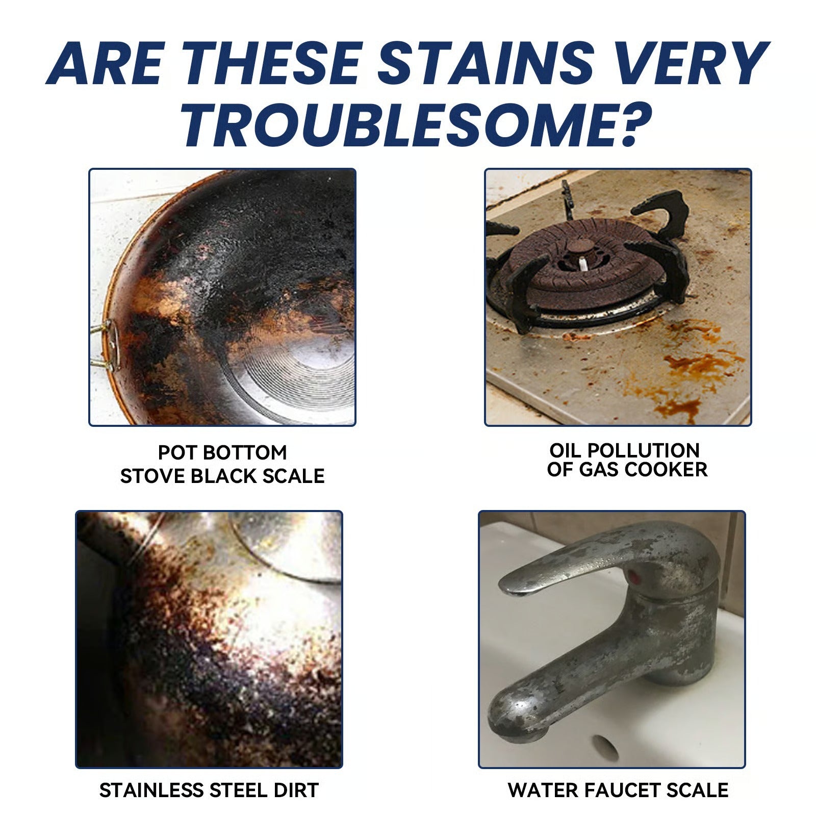 REMOVE STAINS: Our stainless steel cleaning cream is suitable for all kinds of stainless steel and kitchen metal pans, dirt on the oven, scale on tiles and aluminum windows